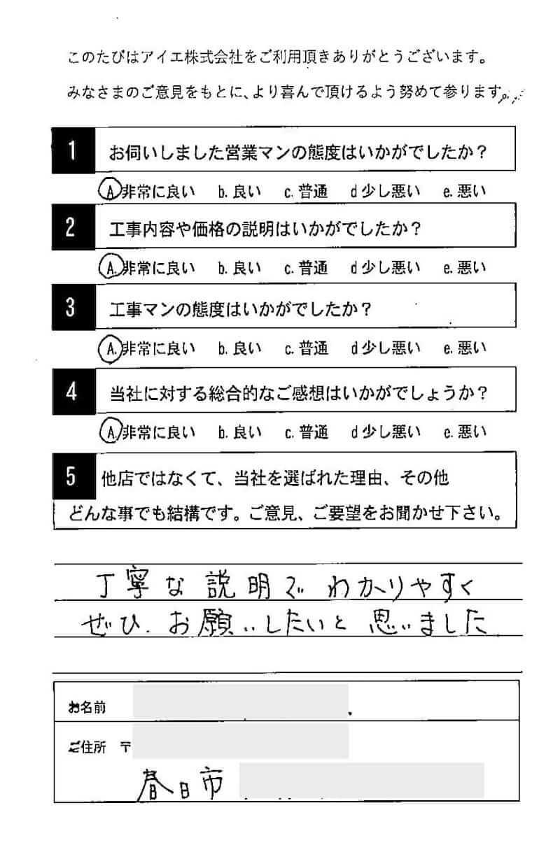 春日市内のお客様の声
